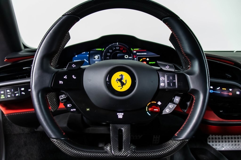 This 2021 Ferrari SF90 Stradale is finished in striking Rosso Chiaro over a refined Nero interior, delivering a perfect balance of Italian passion and cutting-edge hybrid performance. Configured as an Atelier Car, it features dramatic two-tone bodywork in Nero, extensive carbon fiber throughoutincluding the side air splitters, engine covers, rear diffuser, driver zone with LEDs, and front spoilerand lightweight forged diamond wheels that emphasize its motorsport DNA. Inside, Daytona-style full electric seats with Rosso Ferrari perforated leather inserts, carbon fiber accents, and colored stitching in Rosso create a cockpit that feels both luxurious and purpose-built. Premium options such as Apple CarPlay, suspension lifter, advanced front driving camera, titanium exhaust pipes, and a high-end audio system round out this exceptionally specified SF90, making it a true showcase of Ferraris most advanced technology and design.