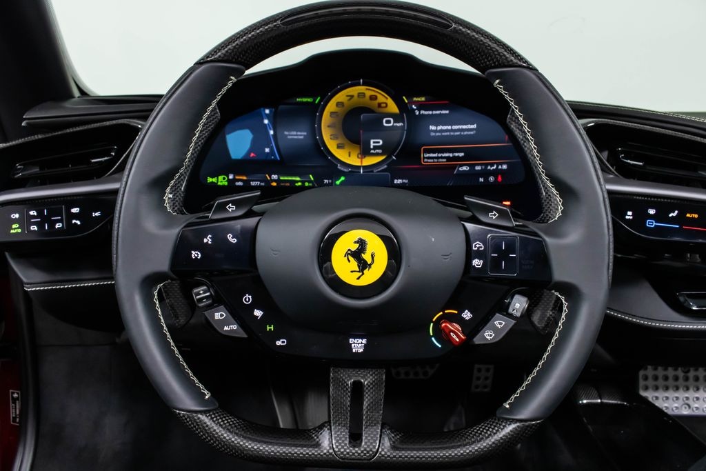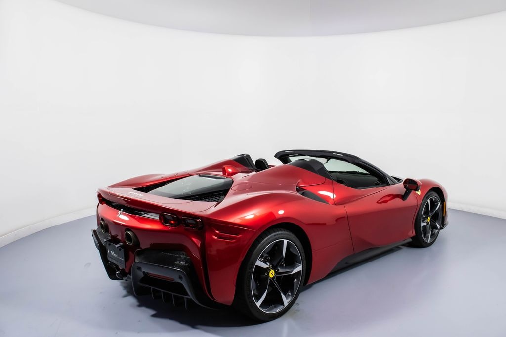 This 2023 Ferrari SF90 Spider is a breathtaking open-top hybrid supercar finished in a stunning four-layer Rosso Magma with Nero two-tone bodywork, delivering an unmistakable presence on the road. The Nero interior is refined with Grigio Chiaro contrast stitching and a matching Cavallino embroidered on the headrests, while Daytona racing seats with a seat lifter ensure both comfort and track-focused support. Extensive carbon fiber elementsincluding the side air splitters, engine bay, rear diffuser, underdoor covers, driver zone with LED steering wheel, dashboard inserts, upper tunnel, and front spoilerhighlight the cars cutting-edge engineering and lightweight construction. Titanium tailpipe tips and forged diamond wheels further enhance its aggressive stance. Equipped with advanced features such as Apple CarPlay, AFS system, surround view, front lift system, advanced front driving camera, electrochromic mirrors, and front and rear parking sensors, this SF90 Spider blends everyday usability with extreme performance. Finished with Scuderia Ferrari shields, a premium Hi-Fi system, and titanium wheel bolts, this highly optioned example represents the pinnacle of Ferraris hybrid innovation and open-air driving exhilaration.