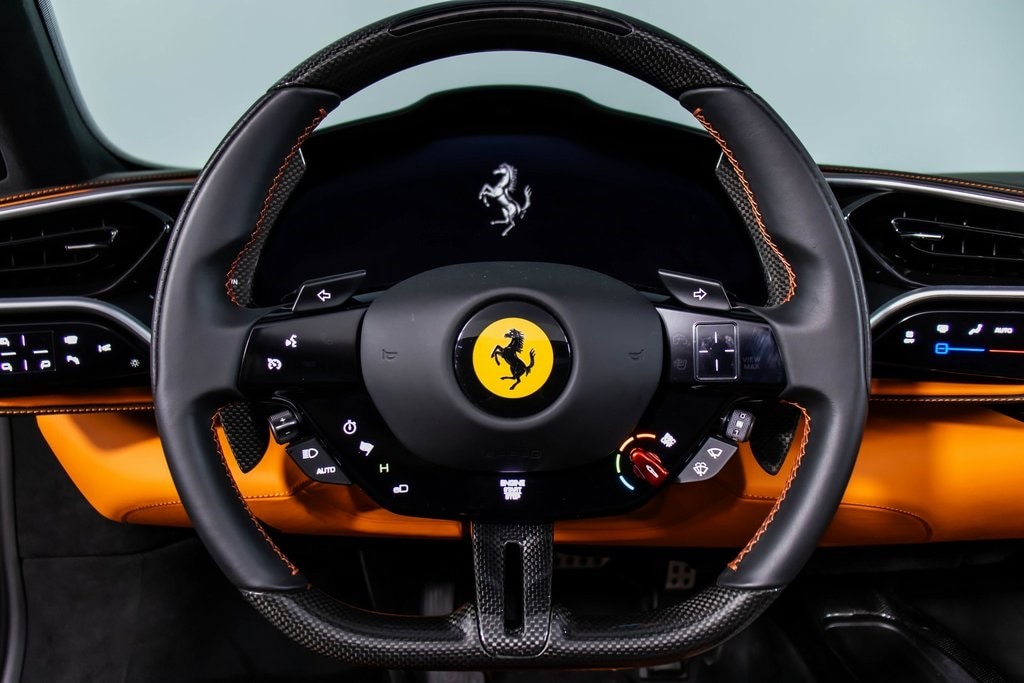 This 2024 Ferrari 296 GTS is a bold and exhilarating open-top supercar, finished in classic Nero Daytona over a striking Orange leather interior that delivers dramatic contrast and unmistakable presence. The exterior is enhanced by matte black forged wheels, gold brake calipers, black tailpipe tips, and carbon fiber wheel cups, underscoring its aggressive yet refined design. Inside, the cockpit is richly appointed with extra-range Orange leather, carbon fiber racing seats, carbon fiber steering wheel with LEDs, and carbon fiber center console trim, creating a race-inspired environment with premium craftsmanship. Advanced features such as Apple CarPlay, front lift, surround view, premium hi-fi system, and a suite of driver-assistance technologies ensure everyday usability, while titanium wheel bolts and bespoke stitching highlight the cars custom specification. The result is a perfectly balanced blend of electrified performance, luxury, and open-air Ferrari excitement.