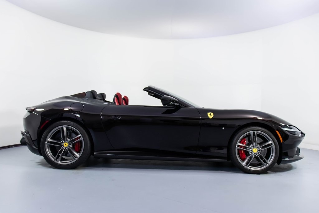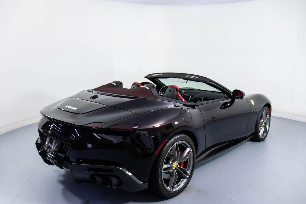 This 2024 Ferrari Roma Spider is finished in striking Nero Purosangue, paired with a rich Rosso Giudecca interior that creates a dramatic and unmistakably Italian contrast. Crafted with classic colors and extensive carbon fiber detailingincluding the rear diffuser, rear boot trim, underdoor covers, exterior sill kicks, dashboard inserts, and upper center consolethe car blends open-air elegance with modern performance. The cabin features extra-range Rosso Giudecca leather with INTC seat centers, a carbon fiber steering wheel with LED shift lights, passenger display, full electric seats, and refined Antracite contrast stitching. Equipped with Magneride dual-mode suspension, front radar with adaptive cruise control, surround view, and advanced driver assistance technologies, this Roma Spider rides on 20" dark forged wheels with red brake calipers and black tailpipe tips, delivering a luxurious yet thrilling grand touring experience under the open sky.