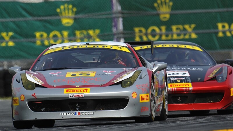 Amidst the clouds and wet terrain, 29 drivers in the 458 Challenge EVOs raced in one of the most exhilarating races to open the 2015 season. Gregory Romanelli, who started today's race in sixth position, overtook five cars including that of pole sitter, Emmanuel Anassis, within the first turn of the race. From there, Romanelli, Anassis, and Ricardo Perez, tailed each other for a majority of the race. Ultimately, Perez would overtake Romanelli at the end of the dogleg before climbing the banks at Turn 6. Perez finished first overall and for the Trofeo Pirelli class, with Anassis and Romanelli stepping on the second and third steps of the podium respectively.
