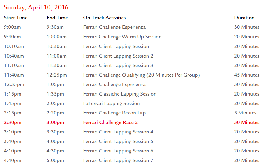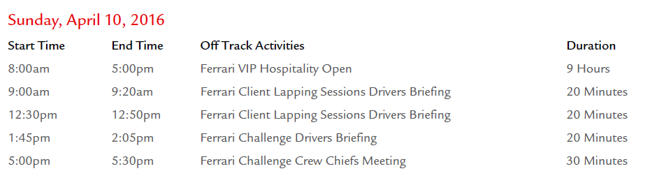 | Ferrari Challenge VIP Hospitality will be open on Saturday, April 9 and Sunday, April 10 from 8am - 5pm VIP Hospitality Passes Include