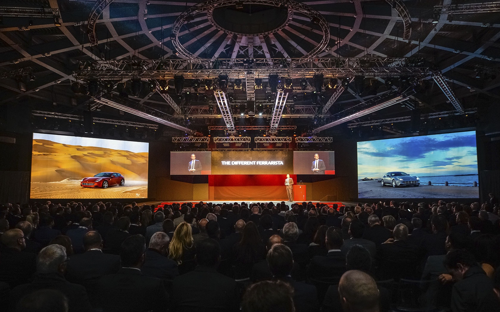 An Unforgettable Evening for the Ferrari GTC4 Lusso Clients from all over the globe gather at the Villa Erba on Lake Como to admire the new Ferrari V12 Almost a thousand clients from all over the globe. A spectacular location in the form of the Villa Erba on Lake Como, once the summer home of the great director Luchino Visconti who finished editing his masterpiece,Ludwig, there. However, the star of this particular evening was the GTC4Lusso, Ferrari's new 12-cylinder four-seater, four-wheel drive which was unveiled at this private evening prior to its official public premiere at the upcoming Geneva Motor Show. After a presentation of the new car's features, dancers representing its central concepts of elegance, luxury, versatility, technological innovation and performance, and accompanied by a live orchestra, provided the build-up to the high point of the evening: the unveiling. At the end of their performance, the GTC4Lusso itself, clothed in an elegant Tailor Made Nuovo Grigio Ferro Met livery, took center stage with Scuderia Ferrari drivers, Sebastian Vettel and Kimi Raikkonen aboard. After two further GTC4Lusso - in contrasting Rosso California and Bianco Italia liveries - made a dramatic entrance, the guests were addressed by Ferrari chairman Sergio Marchionne and CEO Amedeo Felisa before getting the opportunity to admire Maranello's latest creation first-hand. Last but very far from least, having made their way through an immersive "museum experience" inspired by the concepts of infotainment and luxury, the clients enjoyed dinner in one of the Villa's spectacularly frescoed halls. ![]() ![]() | ![]() ![]() ![]() ![]() ![]() ![]() |